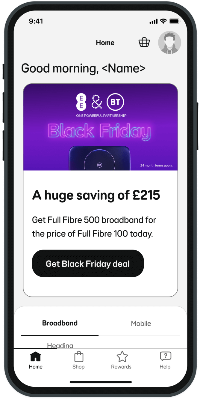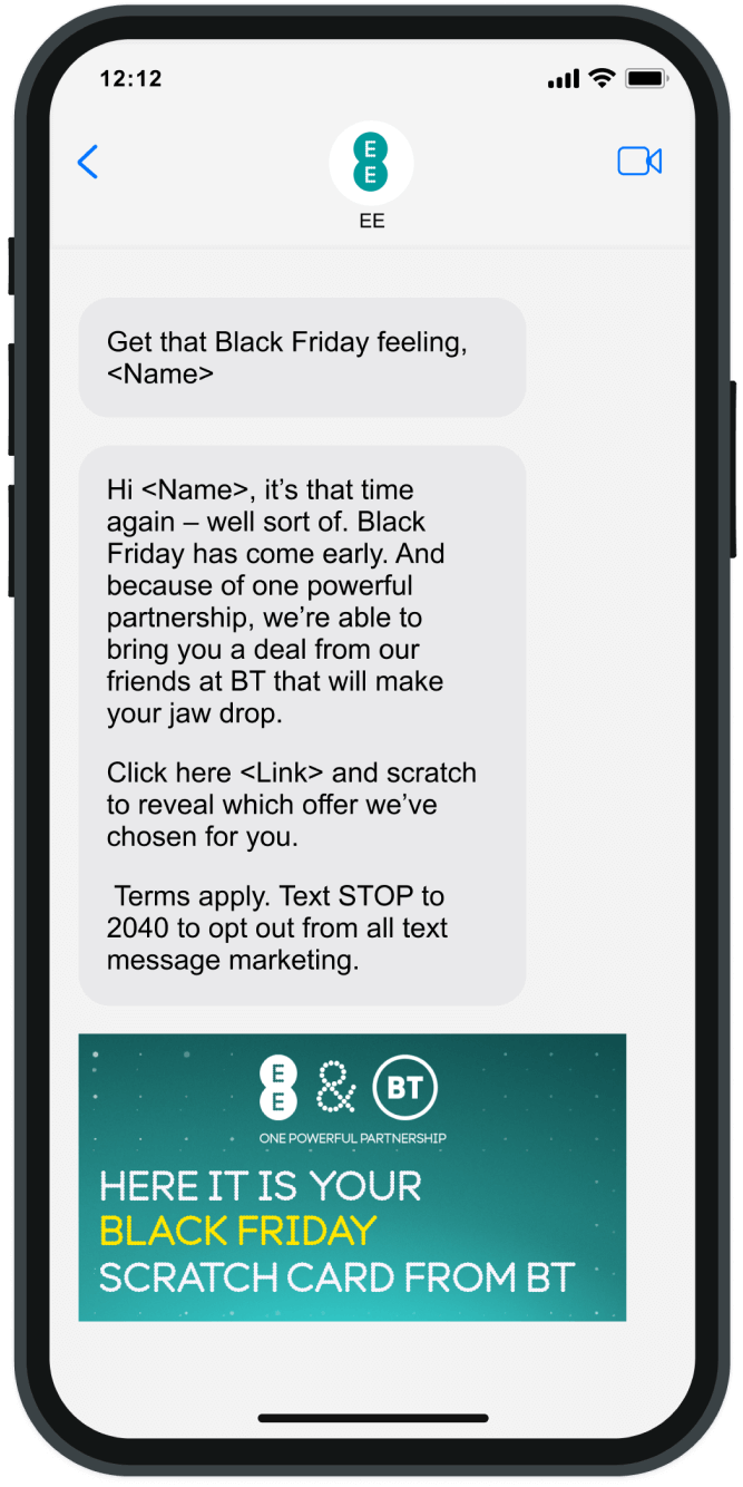 A BT TV & Broadband Black Friday campaign targeted EE customers with personalised deals, leveraging rich media MMS, a dedicated landing page, and app content to drive engagement. The campaign aimed to remind 314,000 FTTP-enabled (Fibre To The Premises) and 939,000 FTTC-enabled (Fibre To The Cabinet) customers of their personalised offers respectively.