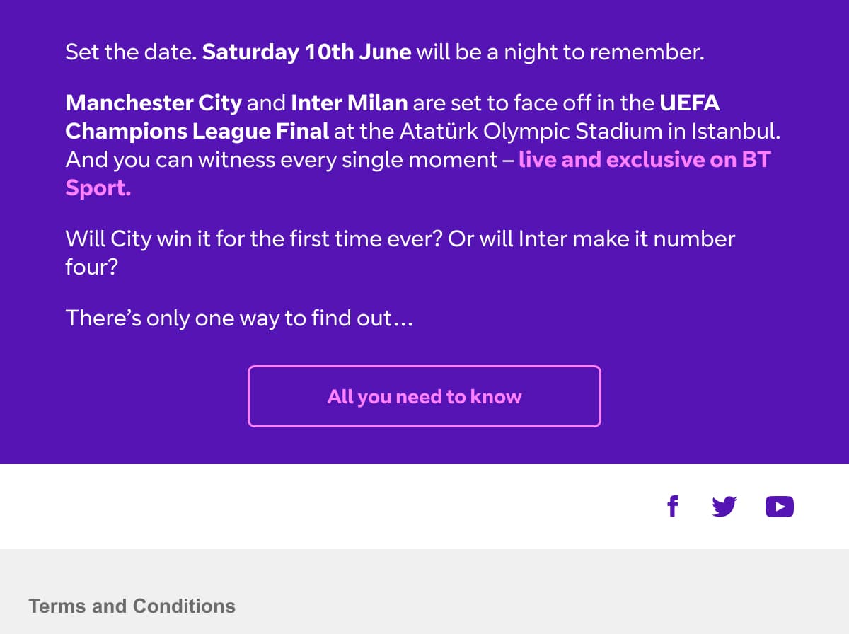 Multi-channel branded campaigns I have produced from concept to launch. The comms are aimed at customers to cross sell, upsell, promote and drive engagement of BT products and services to customers.
