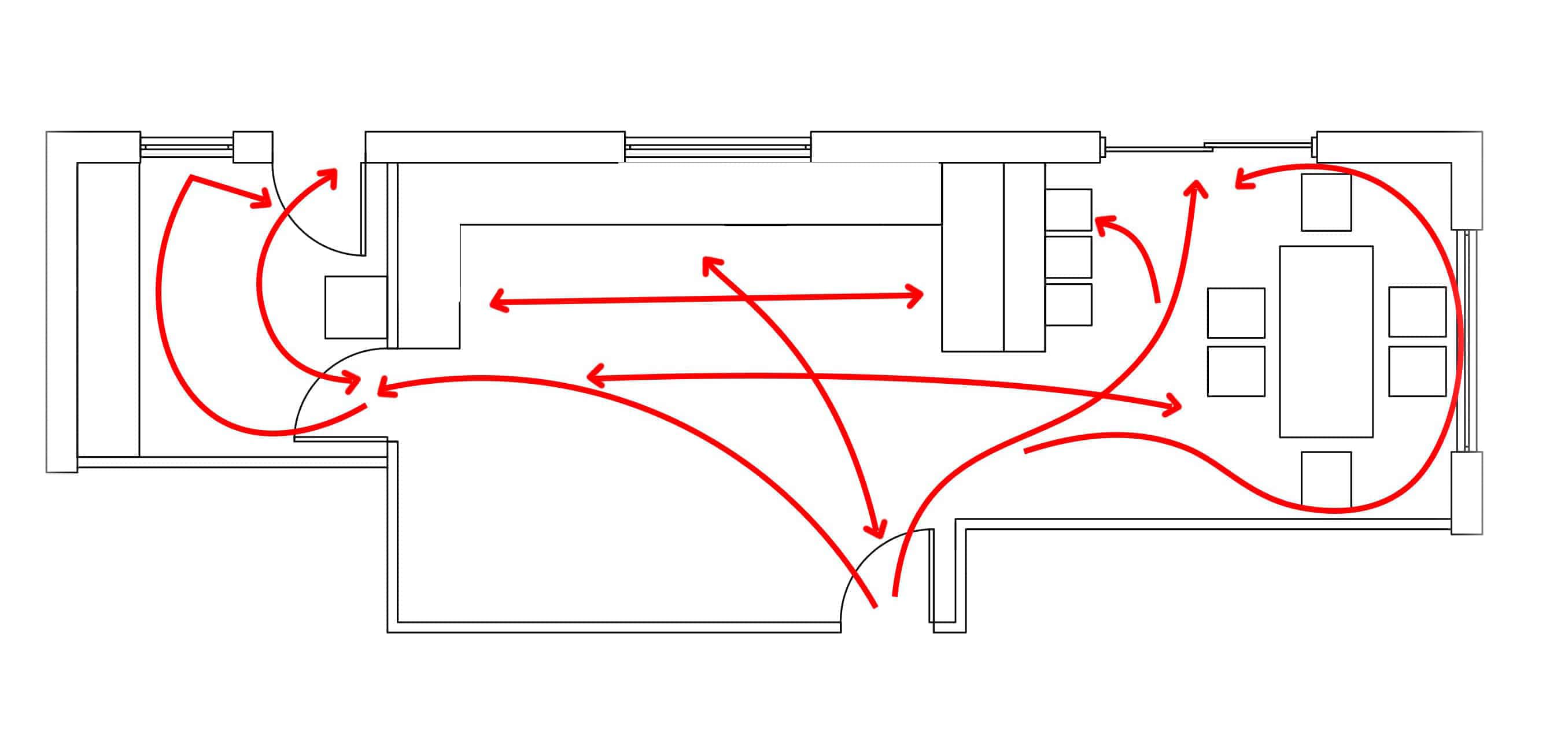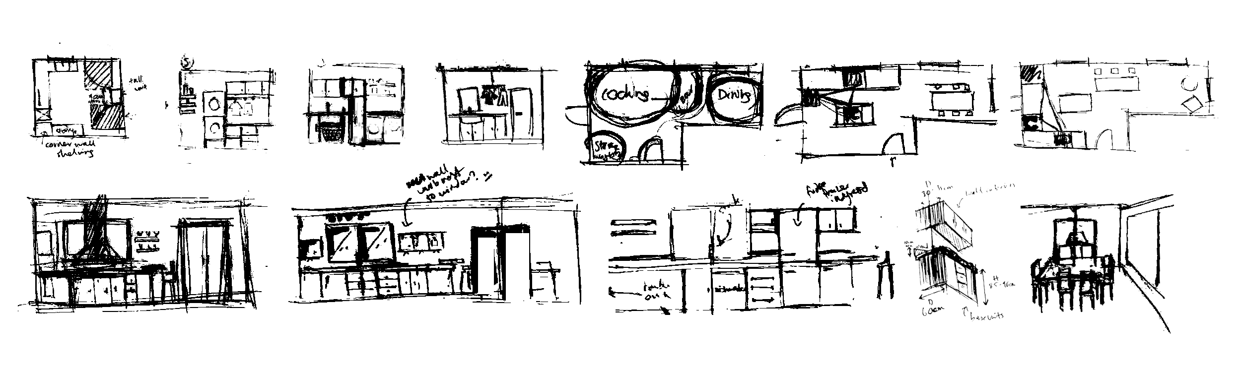 I developed the design through detailed sketches, elevation and floor plans, including furniture layouts and a mood board. I focused on space planning by analysing user traffic flows, zoning, and applying universal standards to create a functional and visually appealing space.